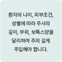 정품·정량을 원칙으로 사용하며 끝이 둥근 캐뉼라를 사용하여