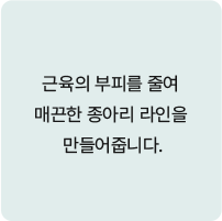 비대 개선 목적으로 사용되며 승모근, 종아리 등 바디라인