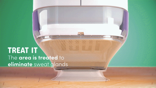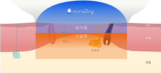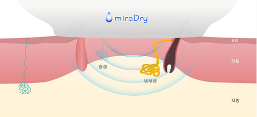에너지를 전달하여 땀샘과 냄새샘을 제거합니다.